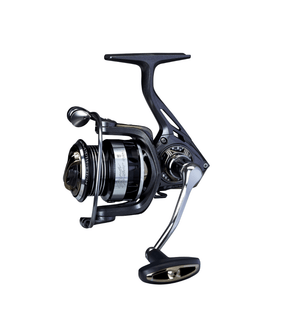 Rolle von spinning der Marke Gunki, Modell Tribes FV 250, in Farbe schwarz und silber, speziell für das Barschangeln.