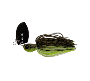 Köder der Marke AGR, Typ chatterbaits, Modell Goliath, 14 Gramm in green pumpkin chartreuse, speziell für das Barsch- und Raubfischangeln.