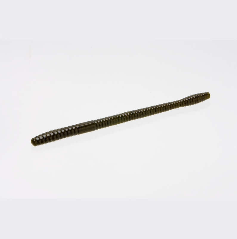 Gummifisch mit voluminöser Wurmform und geradem Schwanz von 177 Millimetern der Marke Zoom Modell Magnum Finesse Farbe grün. Es ist ein dickerer Wurm als das Vorgängermodell Trick Worm, der durch seine Größe mehr Wasser bewegt und größere Haken aufnehmen kann.