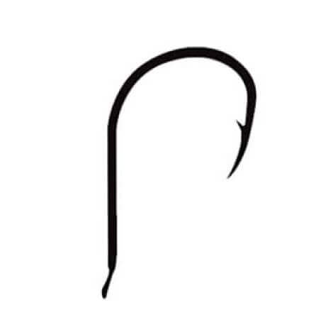 Haken der Marke Asari Modell Chinu Laser Modell Kohlenstoff in Farbe Schwarzer Nickel unter kurze Größe. Es ist ein geschmiedeter gedrehter Haken und hat einen Papageienschnabel.