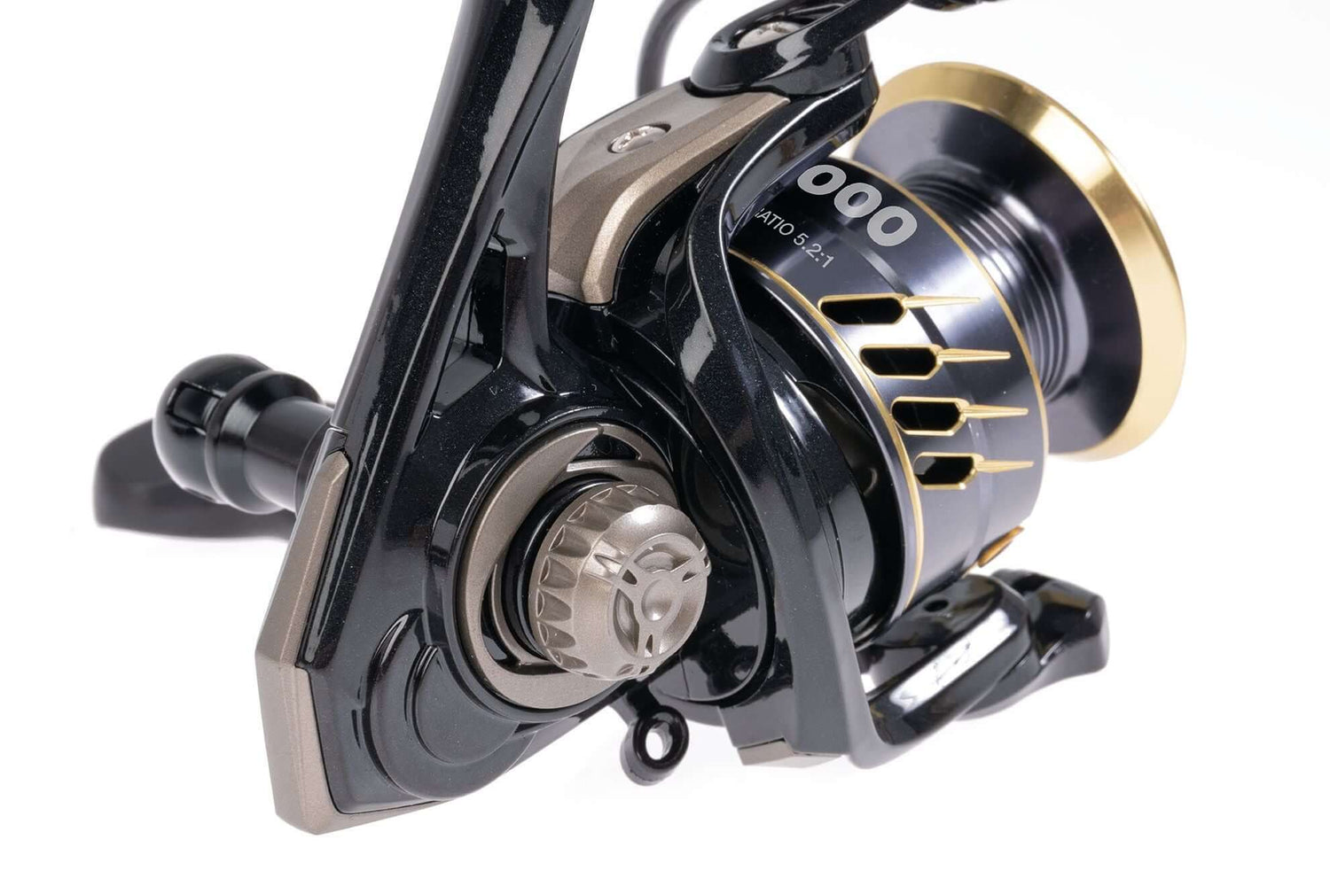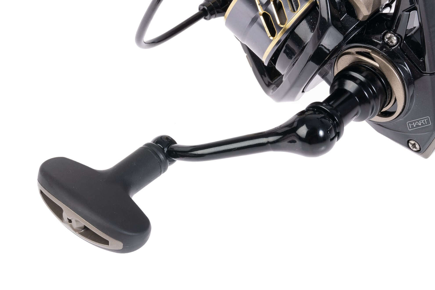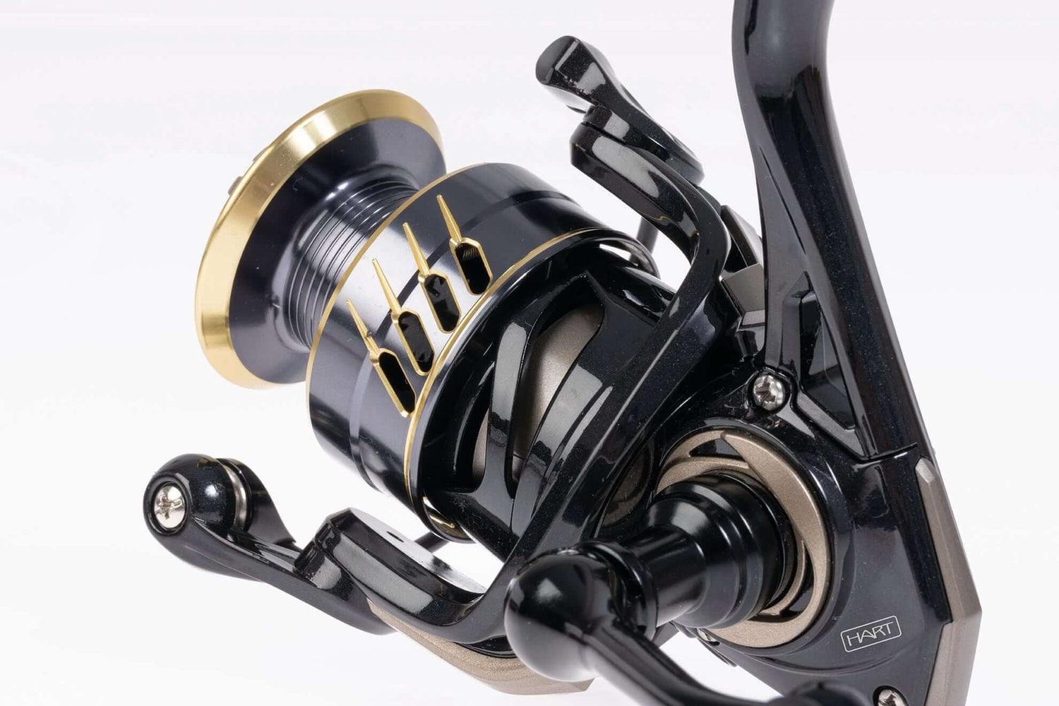 Rolle von spinning der Marke Hart Modell Fiamma, in Farbe schwarz und Gold, speziell für Schwarzbarsch und Raubfischangeln.