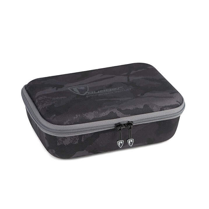Starre Tasche für spinnerbaits der Marke Fox Rage mit Design Camouflage in Farbe grau und schwarzspeziell für das Barschangeln.