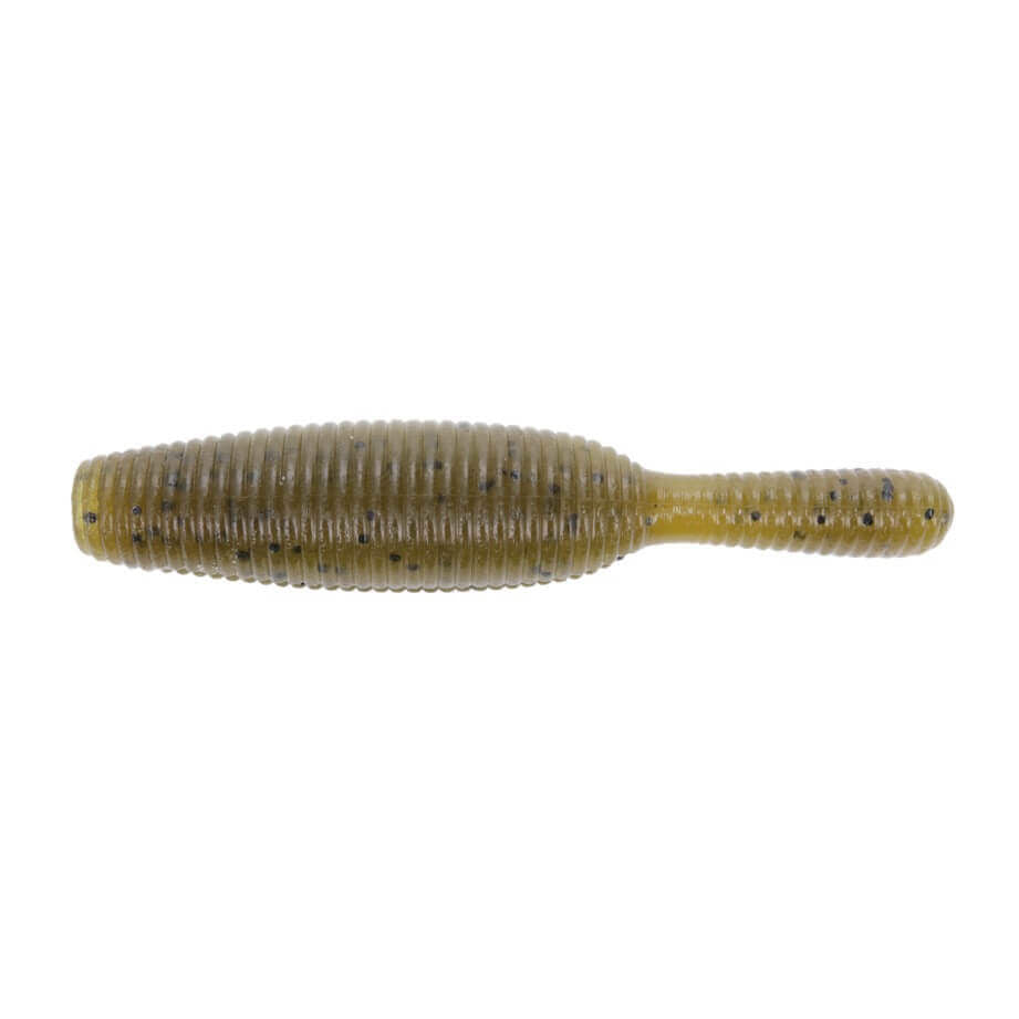 Gummifisch wurmförmig 88,9 mm der Marke Yamamoto Modell Yamatanuki in Farbe grün mit Flecken schwarzspeziell für Schwarzbarsch und Raubfischangeln.