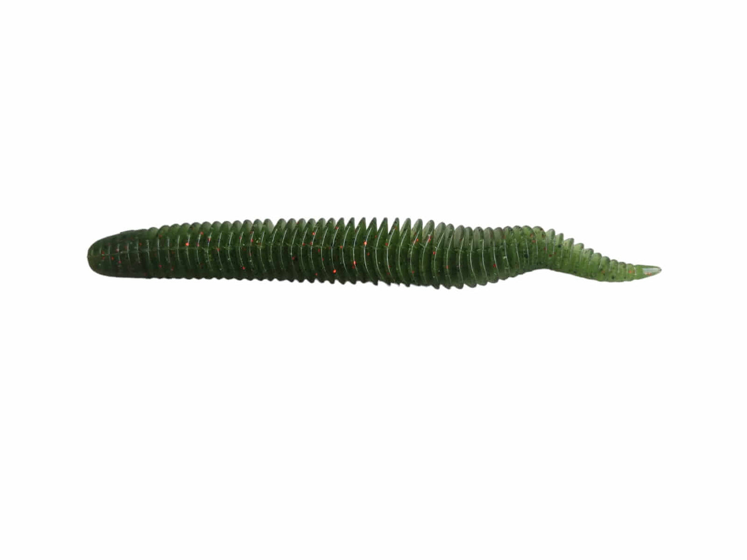 Gummifisch geformt wie Schnecke von 121 Millimetern der Marke Geecrack Modell Balgenstock in Farbe grün, speziell für das Angeln auf Black Bass.