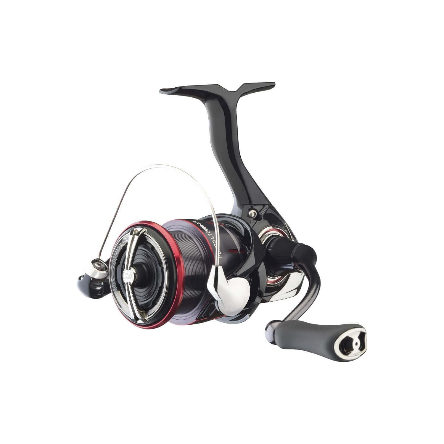 Rolle von Spinning der Marke Daiwa Bereich Feuer 23 LT 2500 XH mit Design schwarz, grau und rot, speziell für Barsch- und Raubfischangeln.