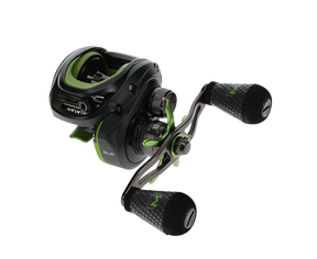 Rolle von Köderwurf der Marke Lews Modell Mach 2 in schwarzer und grüner Farbe, speziell für das Schwarzbarsch- und Raubfischangeln.